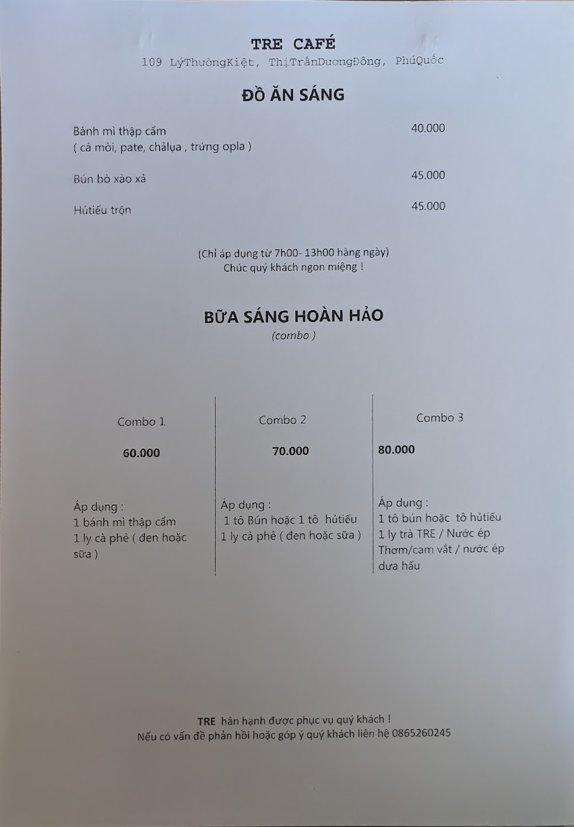 With a vision that embraces quality, TRE CAFE is a promising gem worth visiting in the vibrant culinary scene of Phú Quốc.